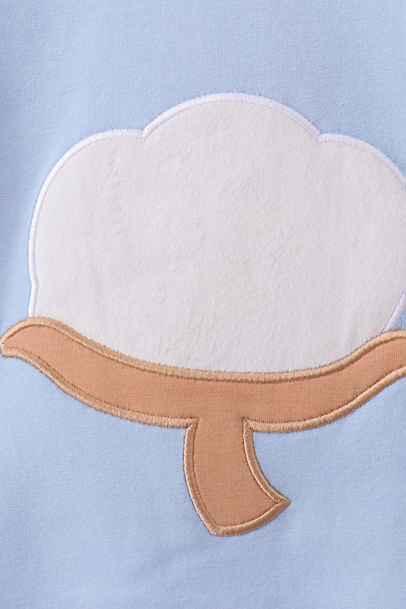 Blue cotton applique gingham pants set