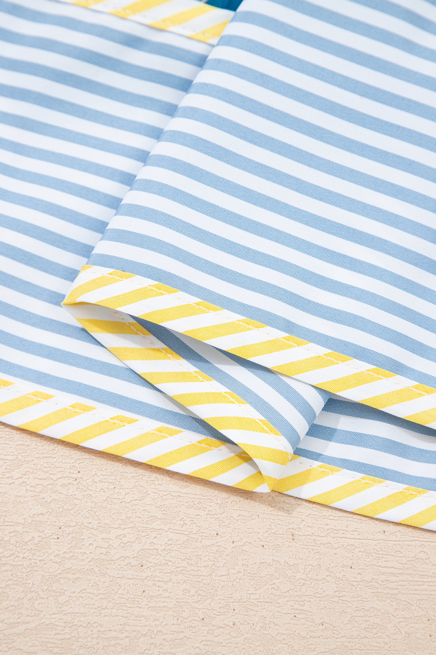 Blue Striped Trim Half Buttons Short Sleeve Floral Dress