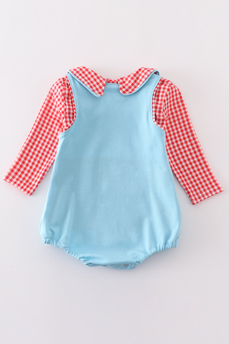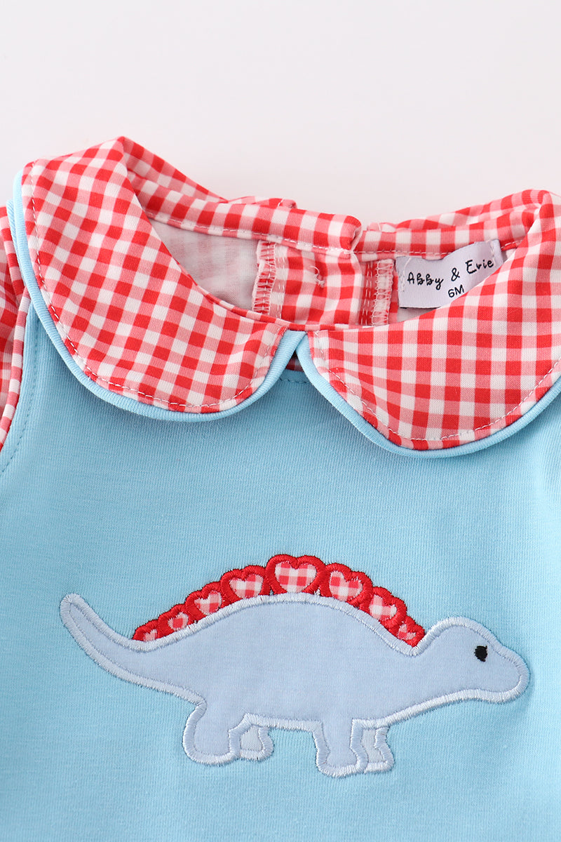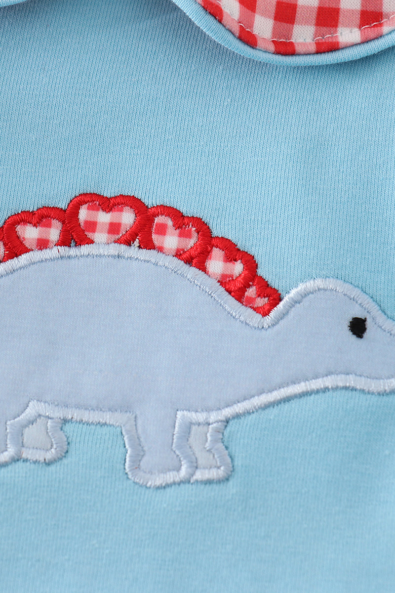 Blue valentine dinosaur applique boy bubble set
