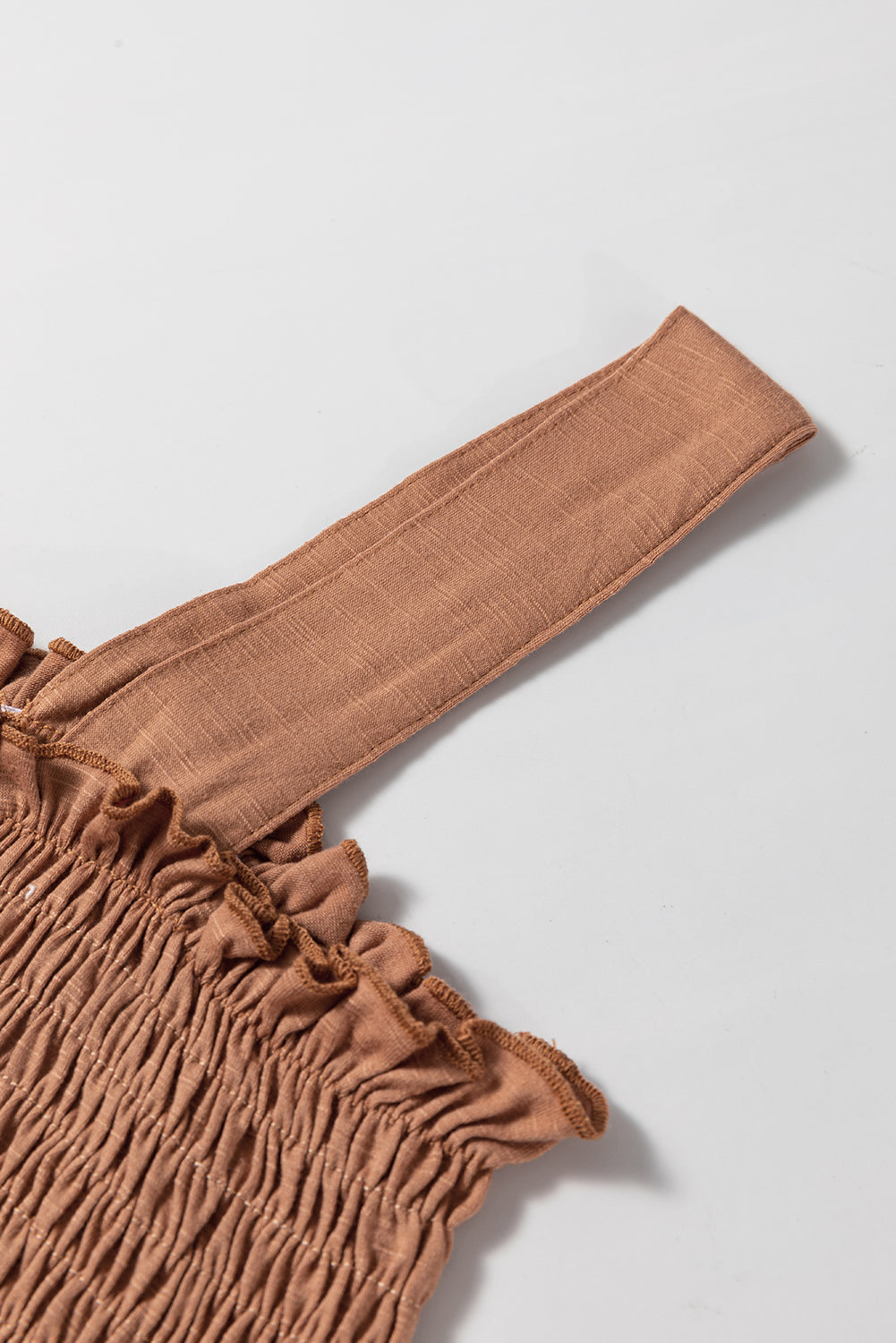 Dusty Pink Ruffled Shirred Wide Leg Sleeveless Jumpsuit