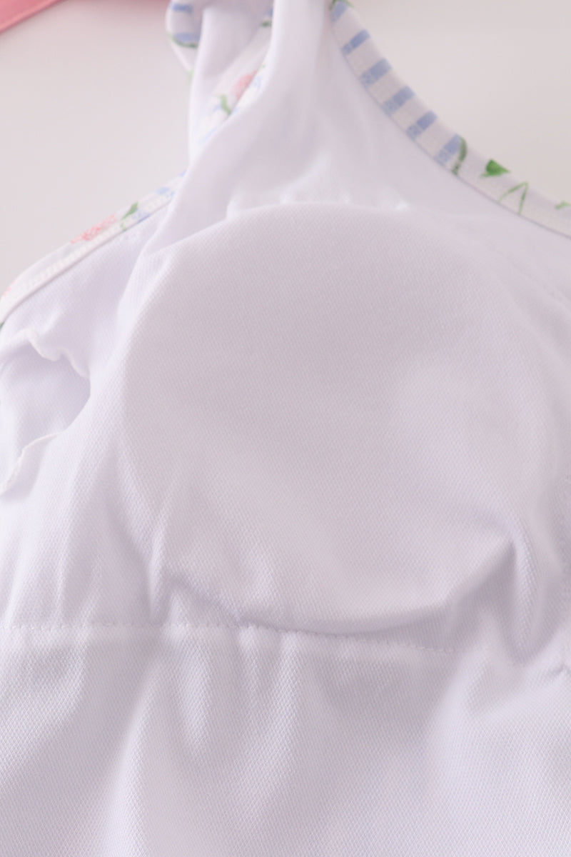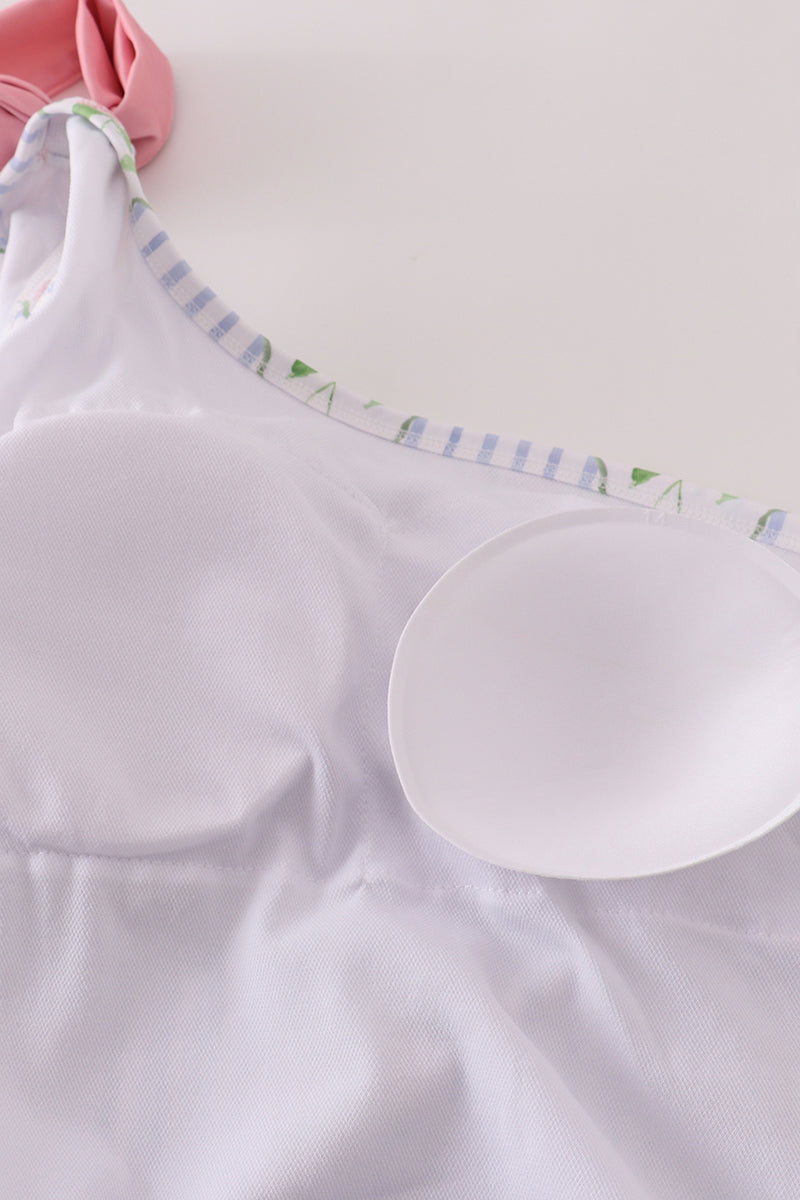 Floral stripe bow swimsuit -Adult UPF50+