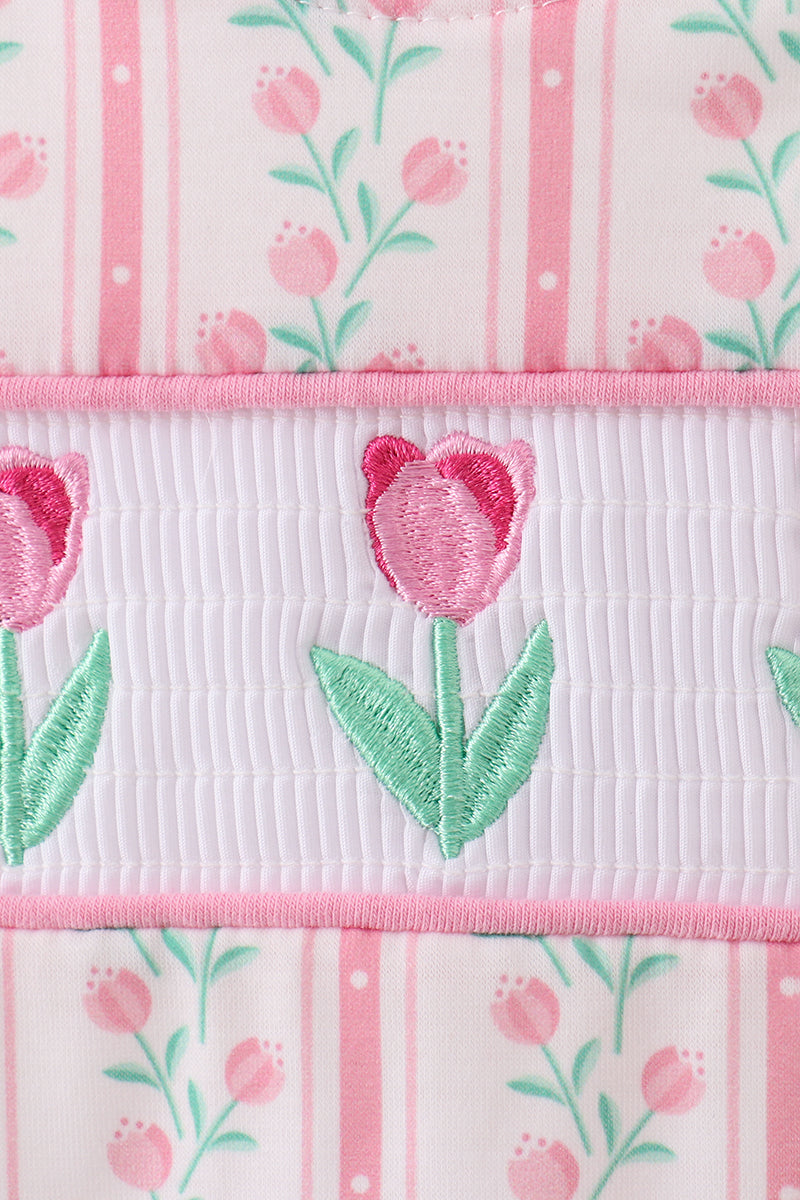 Floral tulip smocked ruffle romper