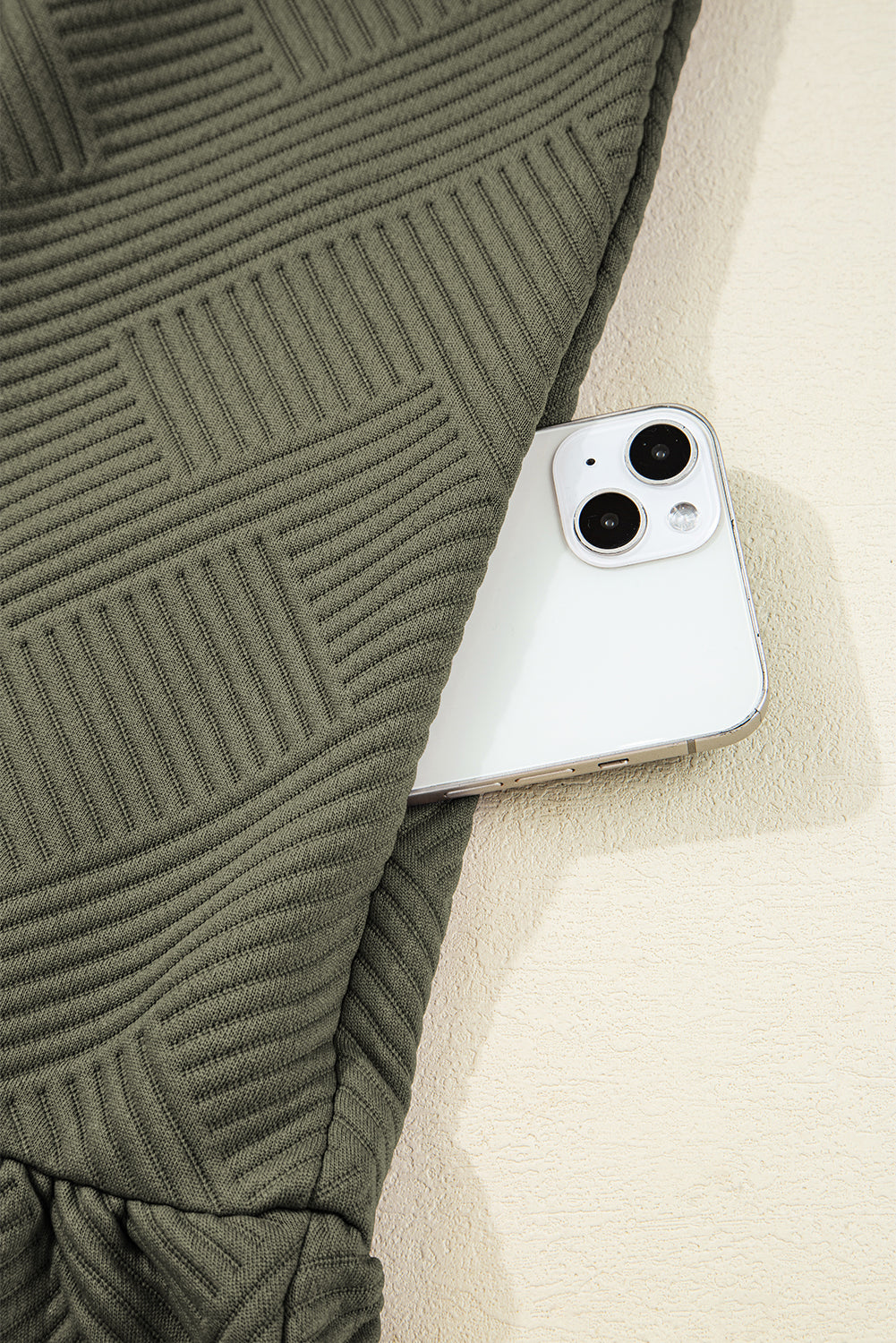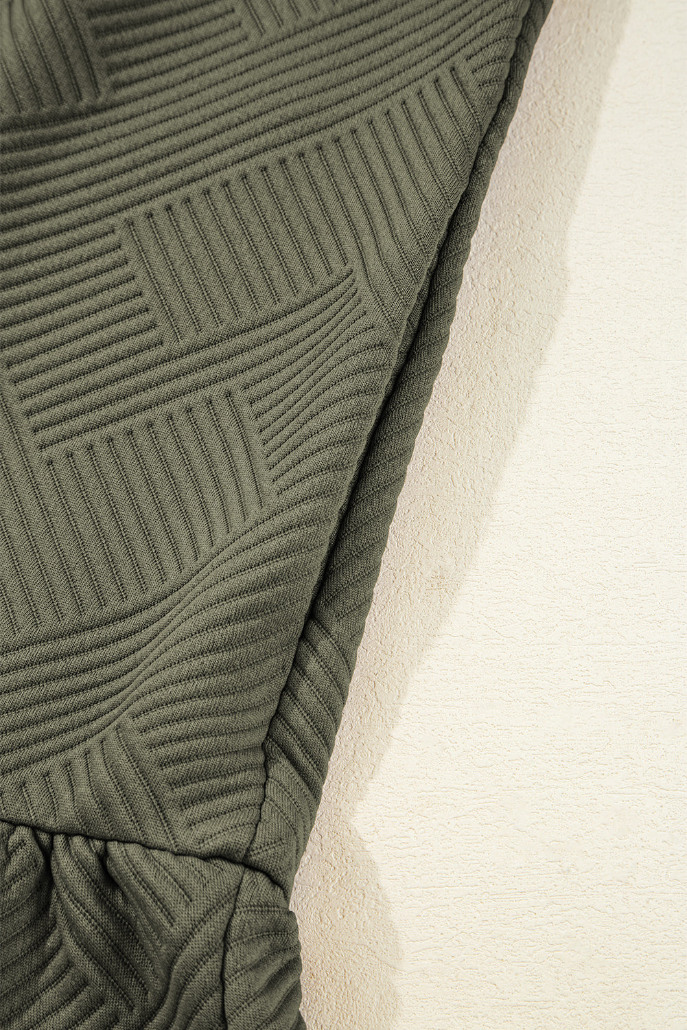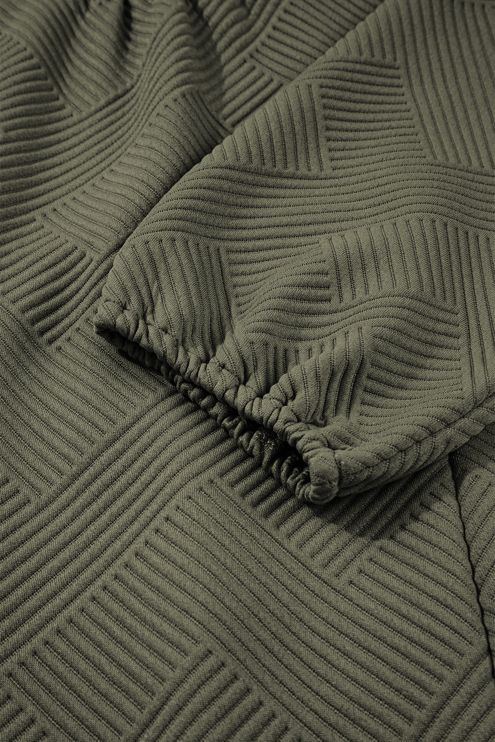Jungle Green Quarter Zip Collar Bracelet Sleeve Textured Mini Dress