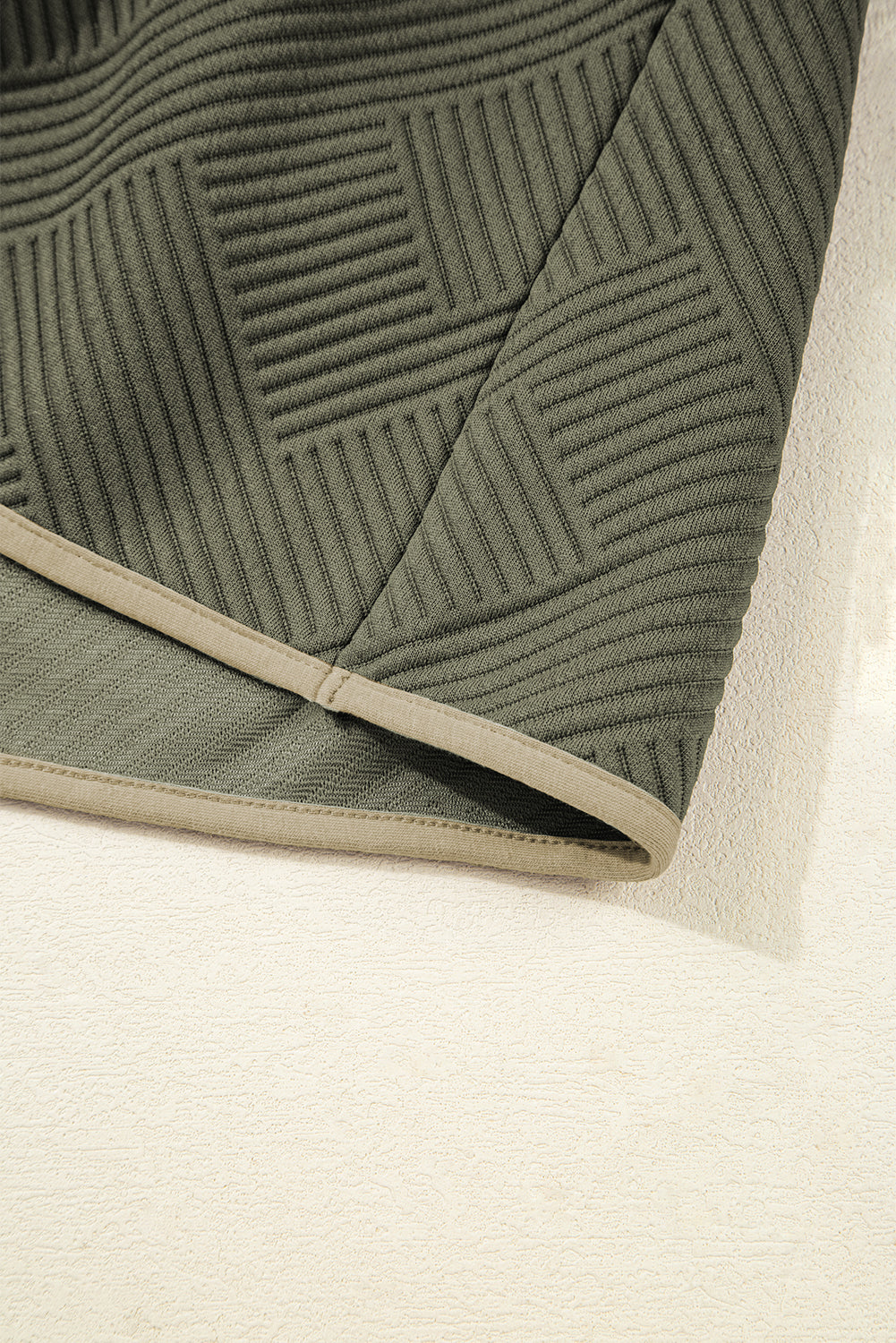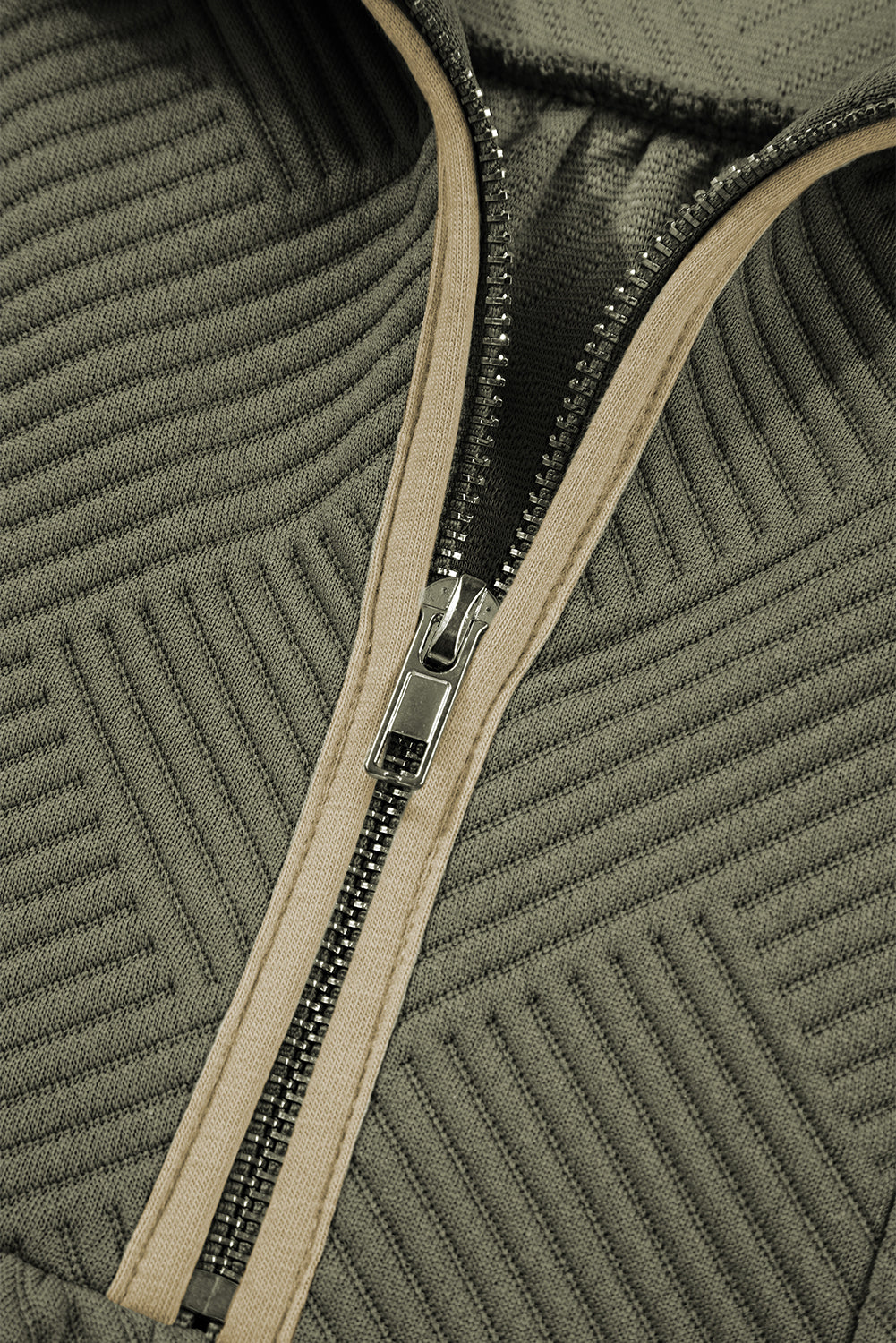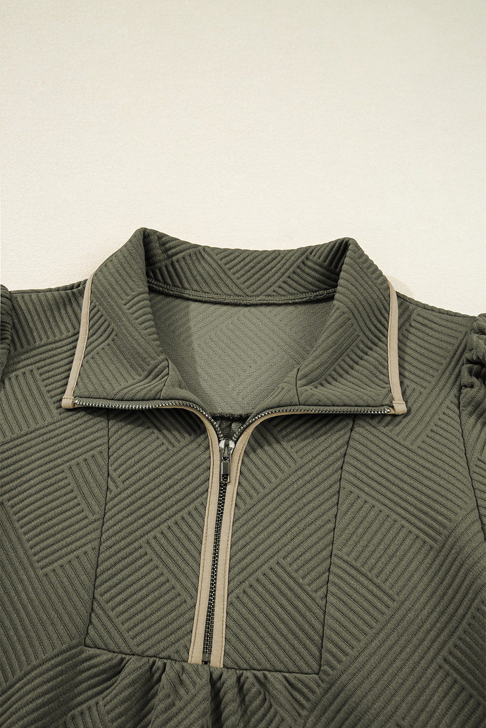 Jungle Green Quarter Zip Collar Bracelet Sleeve Textured Mini Dress
