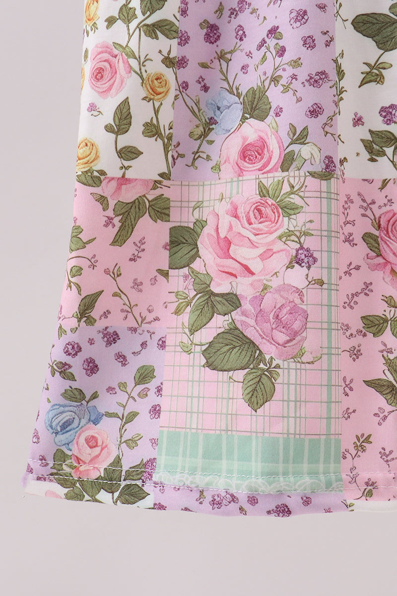 Purple floral checkered ruffle jumpsuit