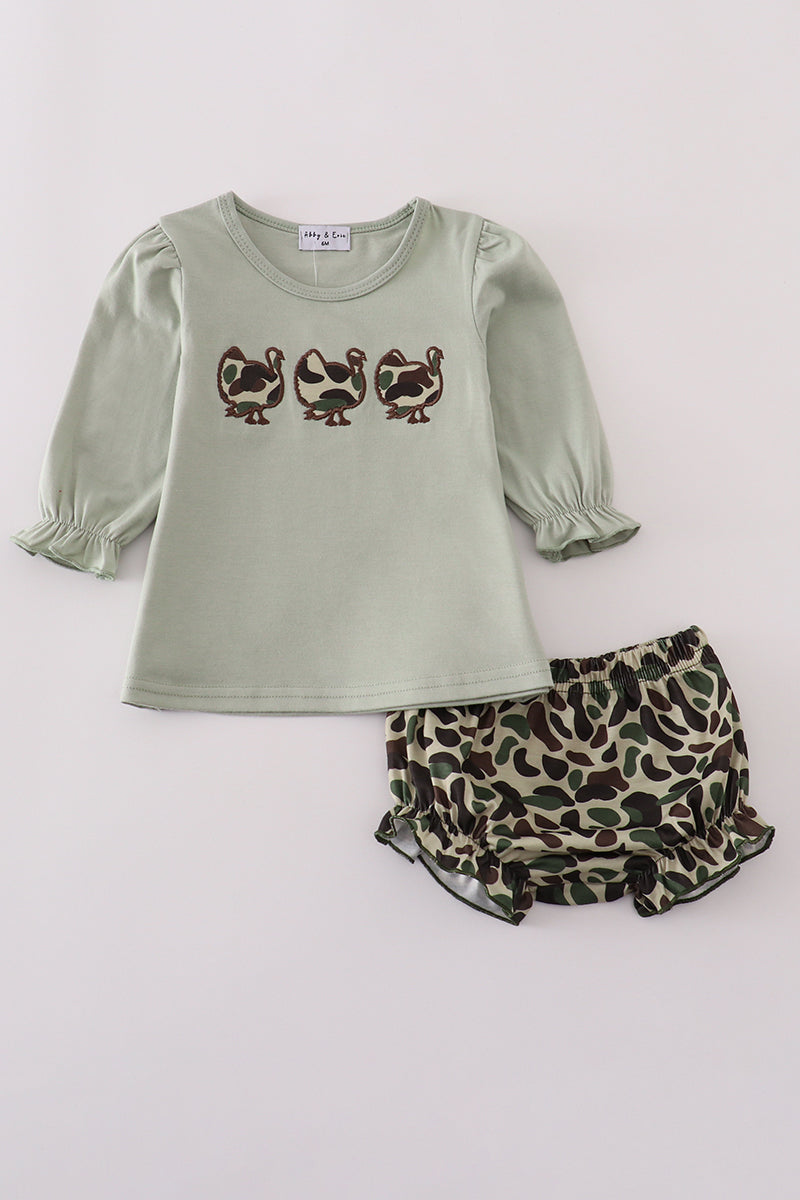 Sage camouflage turkey applique bloomer set