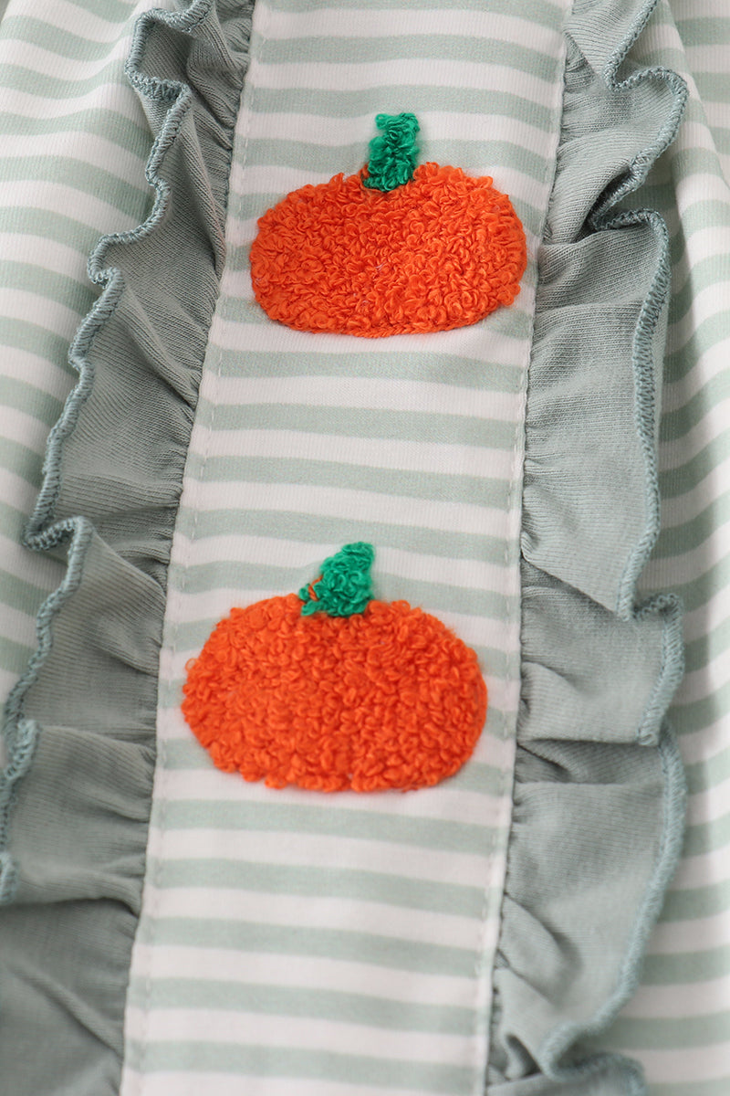 Sage stripe french knot ruffle pants set